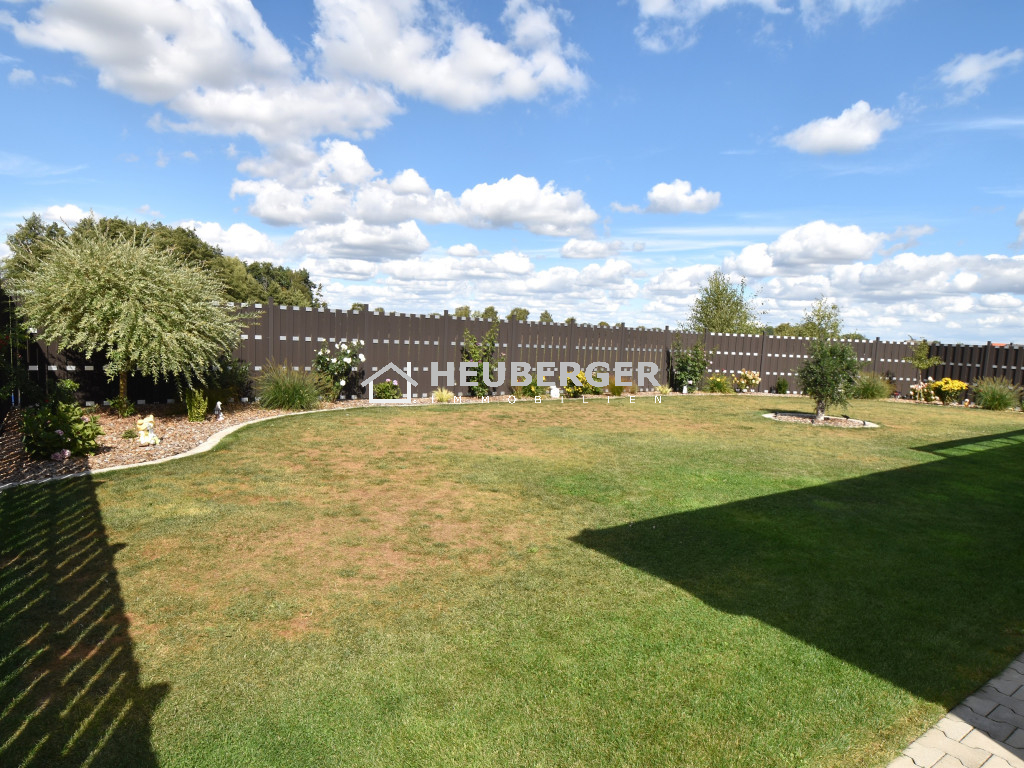 Großzügiger, fertig angelegter und eingezäunter Garten mit Bewässerungsanlage und Rasenmähroboter