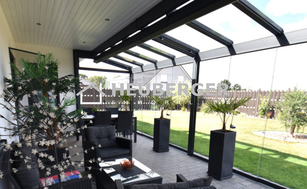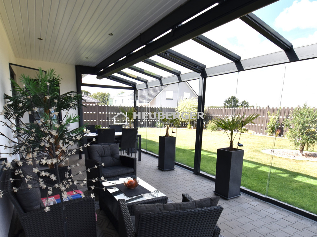 unbeheizter Windergarten mit Teilüberdachung, Beleuchtung, Beschattung und Glasschiebelementen